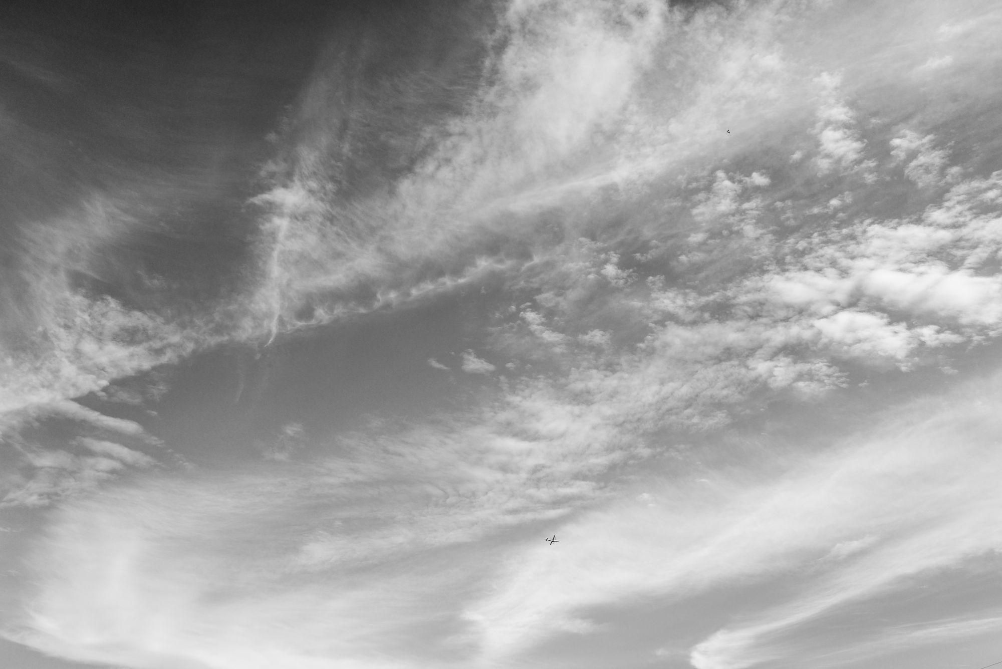 当我仰望天空时,除了感到深邃、辽阔,从我观察的不同角度来看,我还感觉到天空就像画布一样,就像我的画布。在特定的时空之下,我仰望天空,以天空为背景,完成了天空之画。